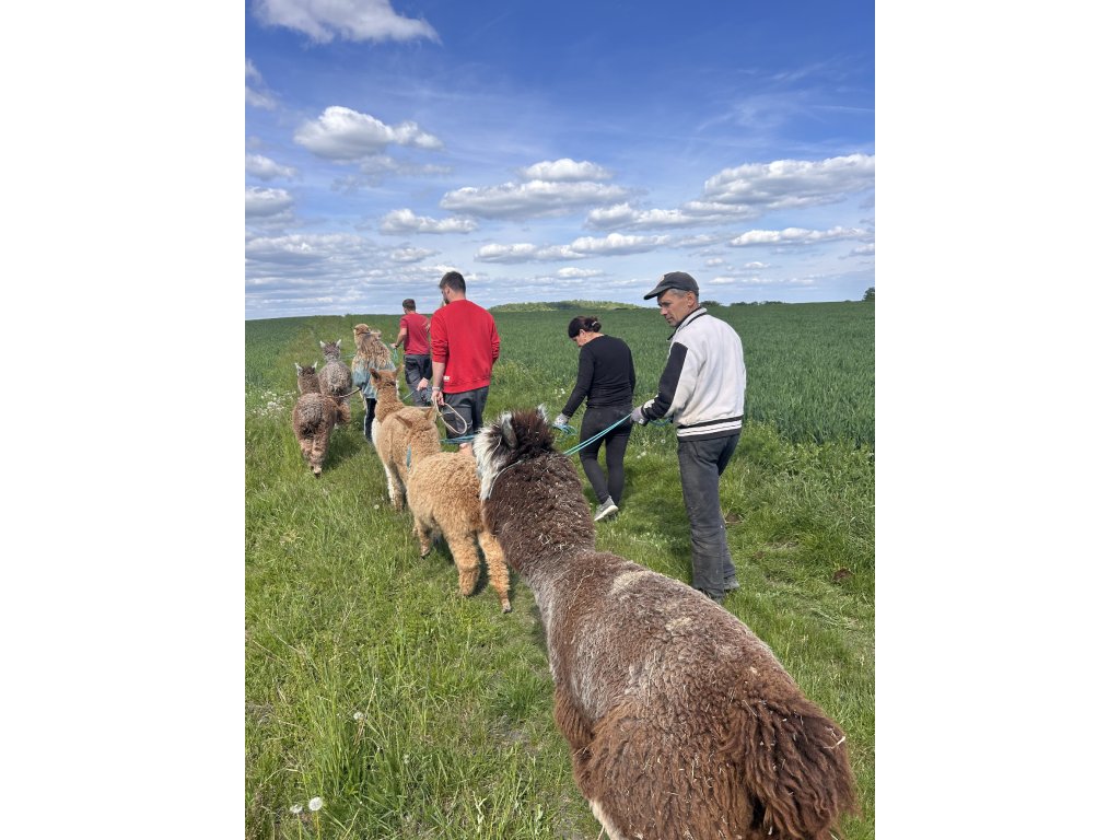 Procházka skupiny do 5-ti osob se skupinkou alpak na 1,5 hod bez průvodce v okolí farmy v Hrubém Jeseníku (u Nymburka) VŠEDNÍ DEN.